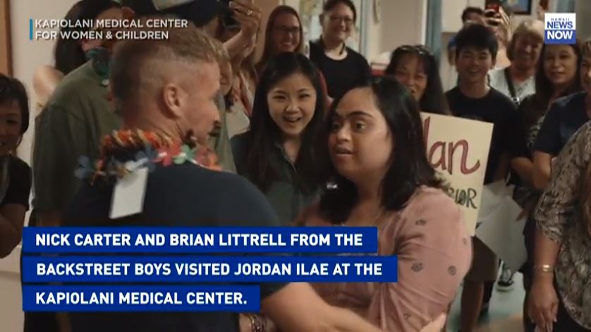 “Band members Nick Carter and Brian Littrell stopped by the hospital before their third concert at the Blaisdell Arena. They sang their iconic songs, like “I Want it That Way” with the keiki.” Photo: from HNN video